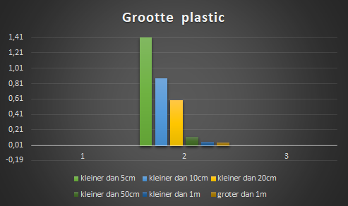 Voor deliverable 2 moesten we een duidelijk beeld geven van wat voor soort afval er is en hoeveel het dan is. In deze tabel staat er hoe groot het afval is. Er blijft meer klein plastic dan groot plastic.