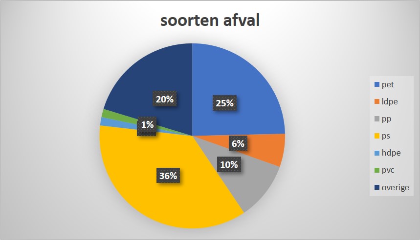 Bij deze tabel zie je wat voor soort afval het is. Er blijven vooral sigaretten en polystyreen (blikjes, bakjes en schaaltjes) over.